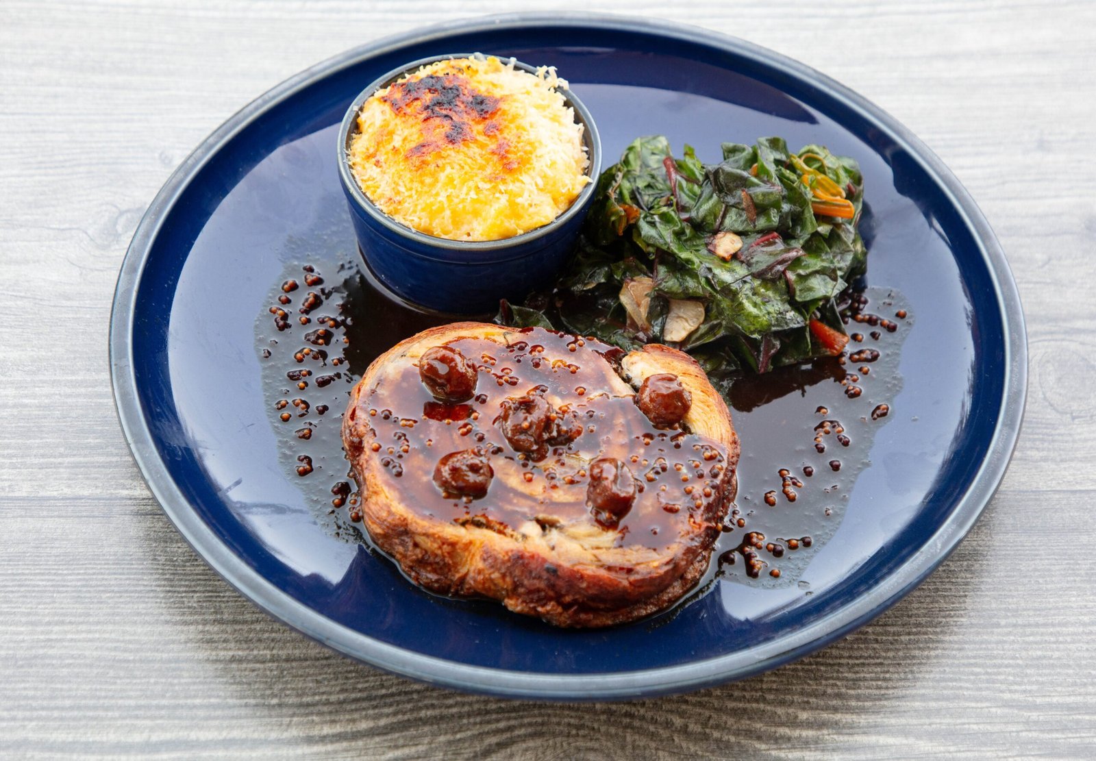 Duroc pork belly and loin, marinated with fresh herbs, garlic,...